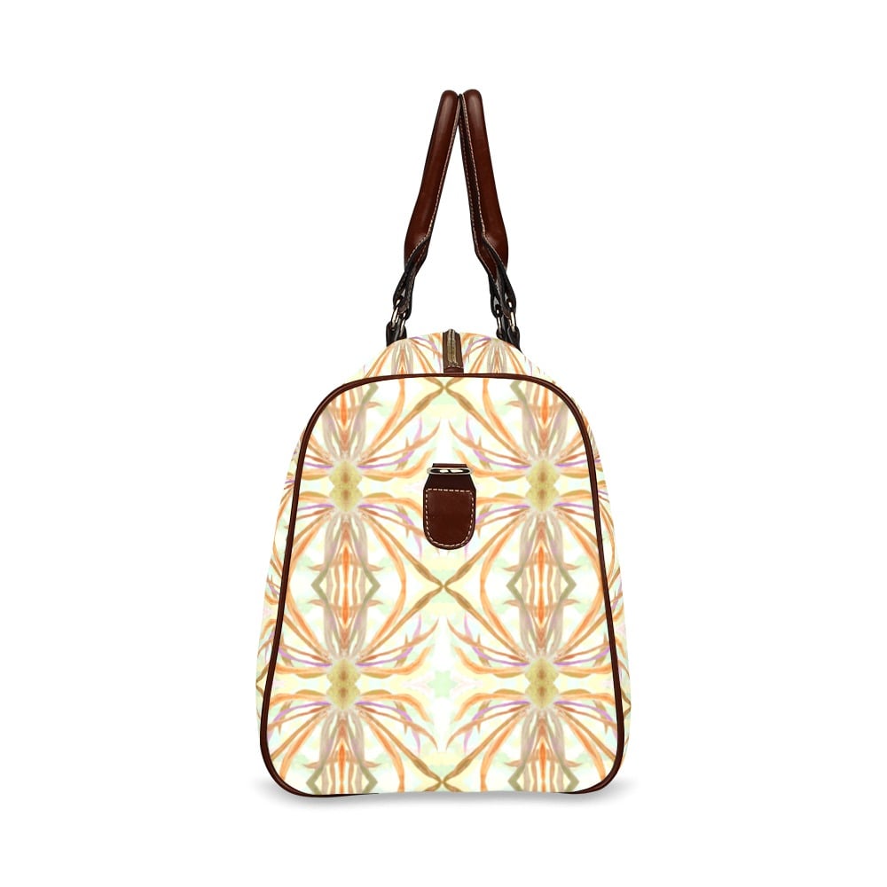 Made from durable high-grade waterproof fabric, it contains one inner zipper pocket on the back wall, and has sturdy brown Vegan Leather handles as well as a comfortable shoulder strap.